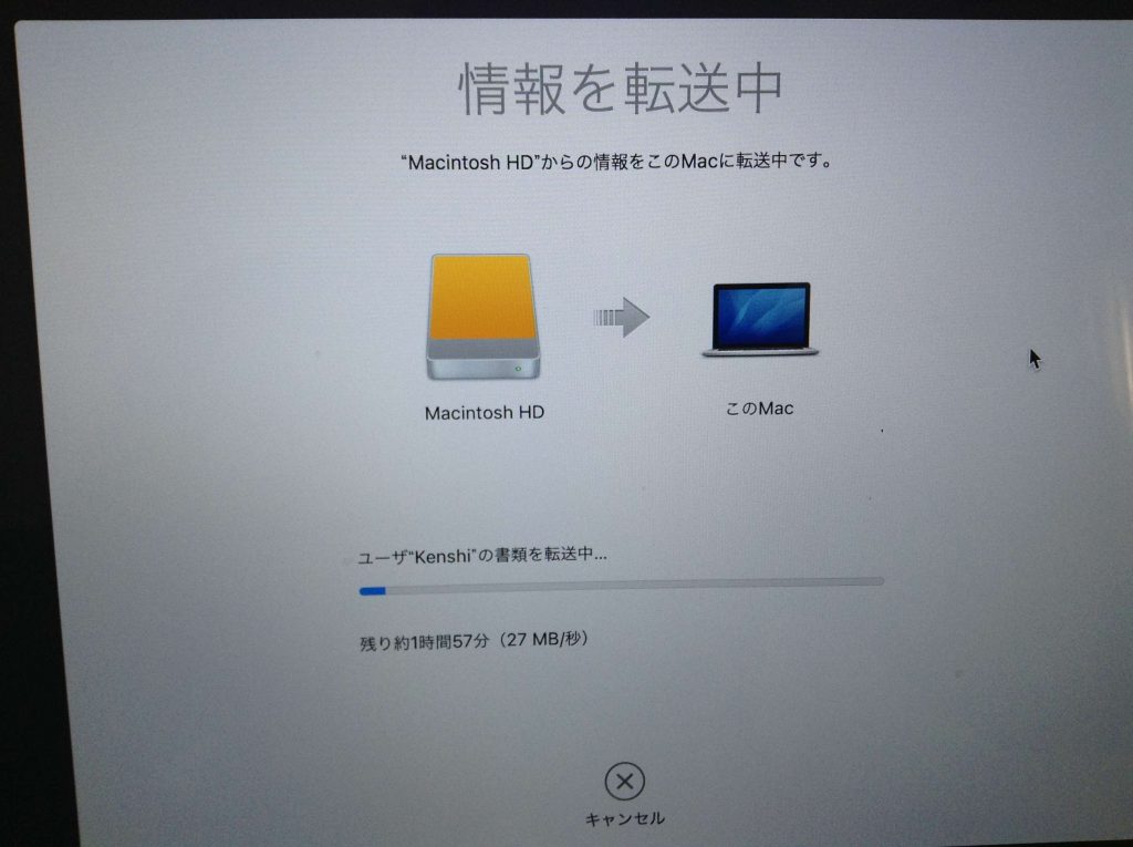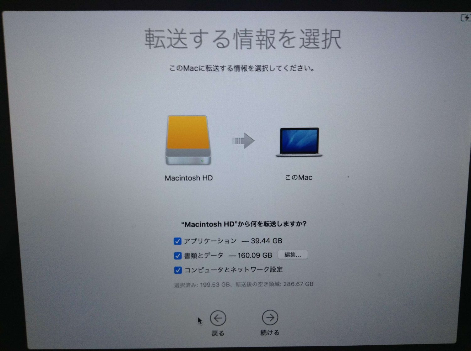 - トラブル回避のため、一応OSをsierraにアップグレードして移行元と合わせておく