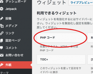 - 外観→ウィジェットから「PHP コード」が追加されていることを確認